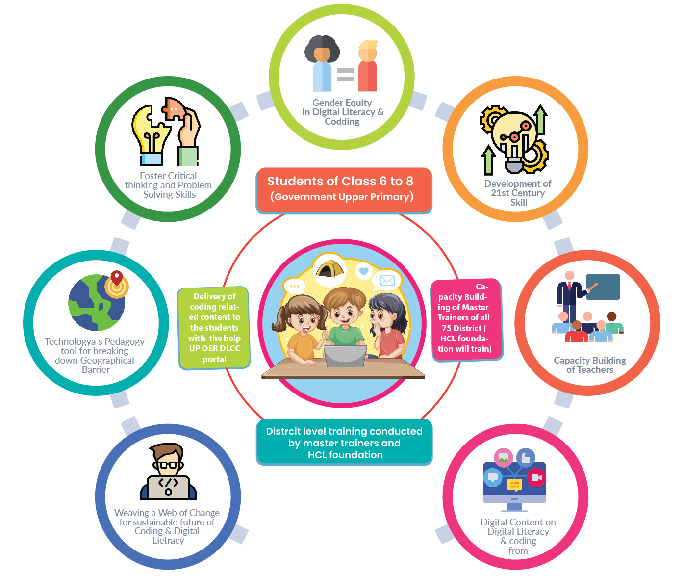 HCL Foundation in collaboration with Department of Basic Education, Government of Uttar Pradesh and local administration aimed to empower the students with digital literacy, coding and computational thinking skills in 11 Kasturba Gandhi Balika Vidyalayas (KGBVs) and 15 composite schools across 11 blocks in Hardoi district.