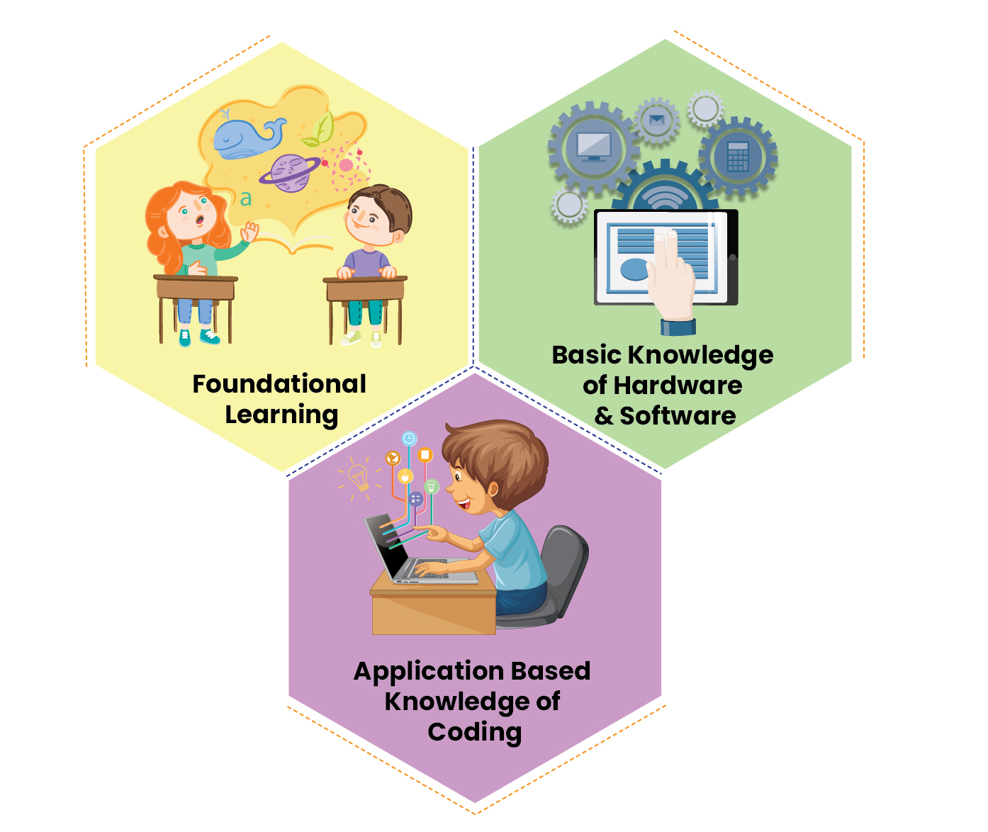 Focusing on improving the foundational skills of students in their early years of education, introduction of topics such as ‘coding’ and ‘computational thinking’ aims at crucially affecting and improving the cognitive and analytical skills of the students. Largely aiming to improve the ‘logical thinking’ and ‘problem solving skills’ amongst the students, learning how to code also aims at setting a certain amount of preparedness amongst the future-employable section of the nation. However, broadening the scope of computational thinking and learning would lead to understanding how the component of ‘digital literacy’ aims at universalizing the accustoming with digital technologies and using them to live, learn and work.